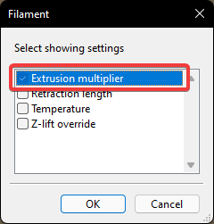 Dado que la mayoría de laminadores/slicers nuevos disponen de perfiles para tipo de filamento/material lo ideal es crear uno nuevo para cada tipo de filamento y almacenar ahi cualquier cambio con respecto a otros ya sea con cambio de valores o, de permitirlo, mediante gcode especifico de filamento (como en SuperSlicer/PrusaSlicer que le da una gran versatilidad y personalizacion).