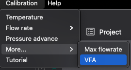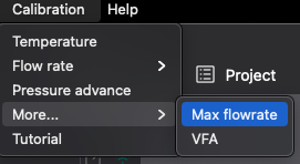 Desde el menú de calibración elegimos el test Max flowrate