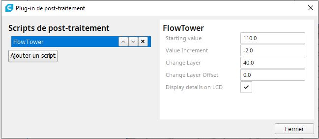 El siguiente paso será crear los modificadores de capa para cambiar speed factor o flow rate cada 5mm