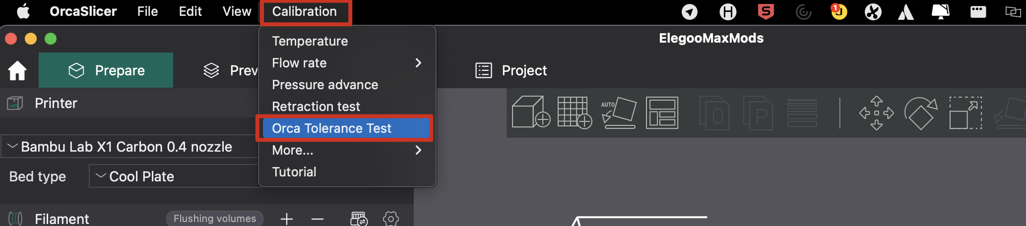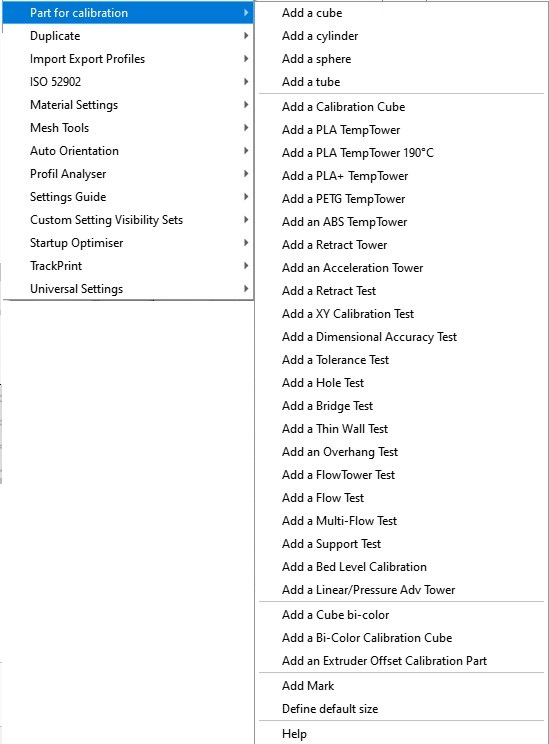 Aconsejamos el uso de OrcaSlicer (fork de Bambu Studio) o SuperSlicer (un fork de PrusaSlicer donde integran opciones avanzadas antes de incorporarlas) ya que tiene unas estupendas opciones para generar algunos de los tests de calibración usados en esta guía.