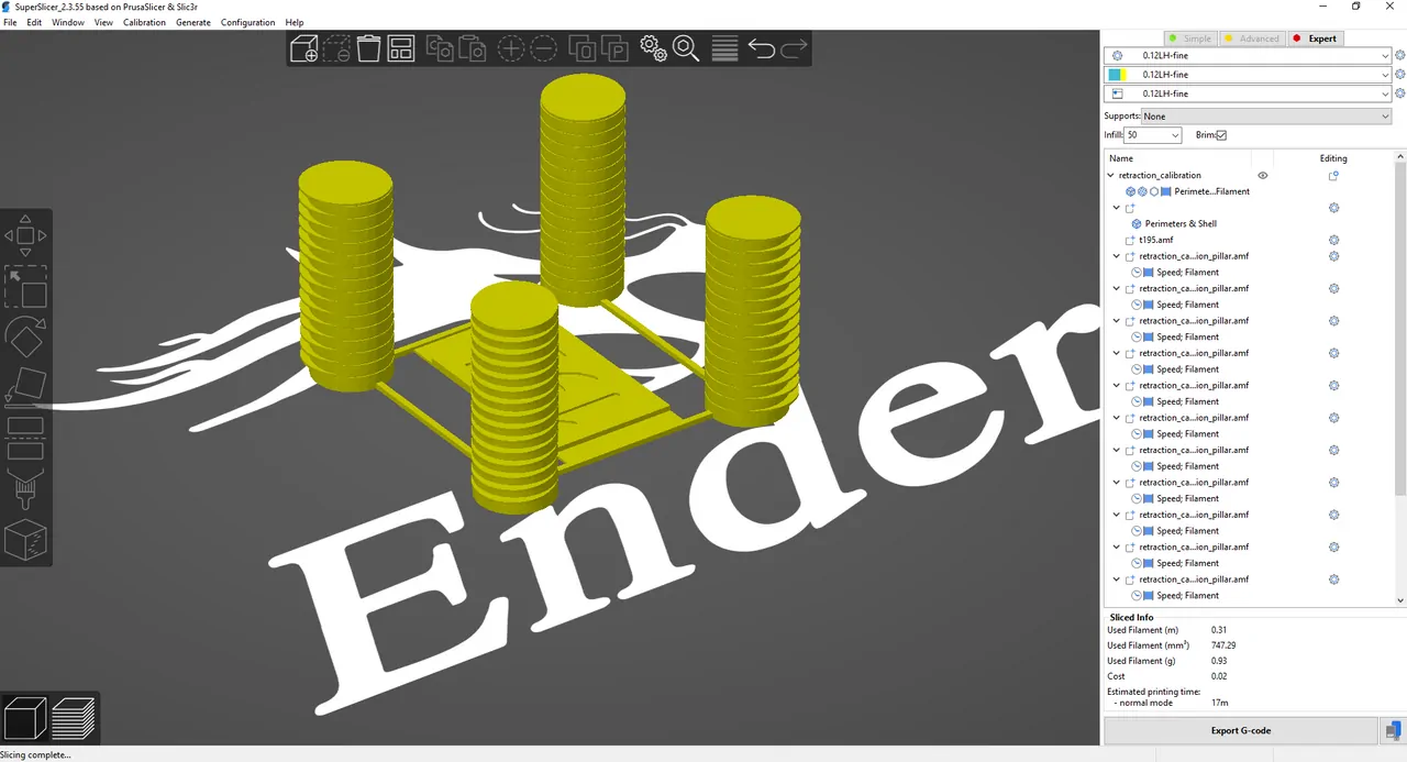 Nos aseguramos de que el relleno de la figura, 1 solo perímetro y las capas inferiores/superiores sean 0