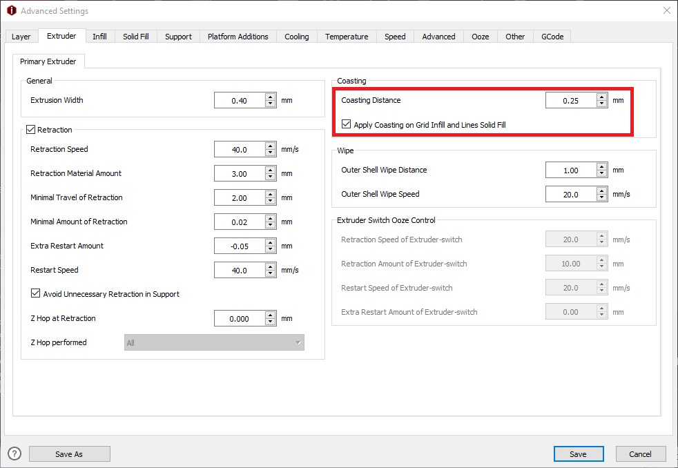 Como ya comentamos este potente ajuste es muy sencillo de aplicar a nuestro slicer/fileteador. En el caso de PrusaSlicer/SuperSlicer: