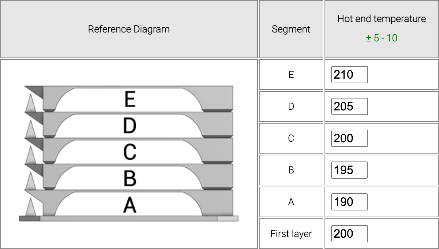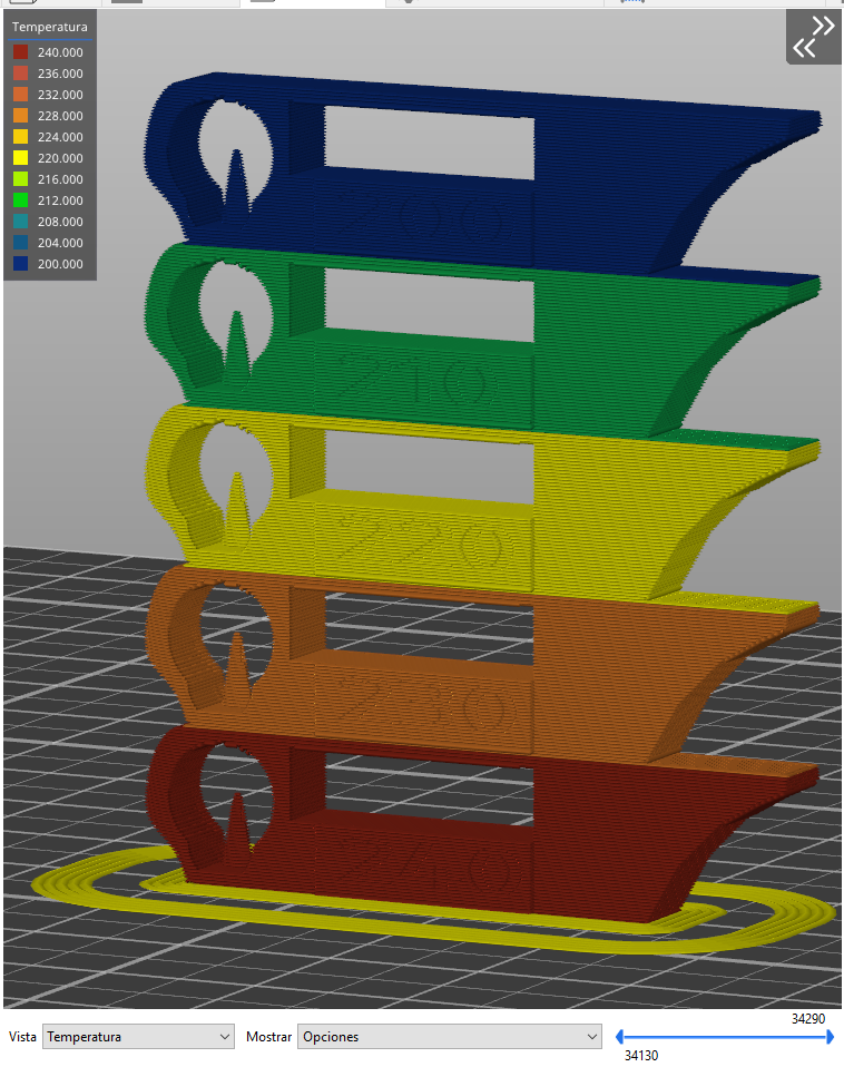 Torre de temperatura que nos permitirá verificar o encontrar la temperatura óptima para nuestro nuevo filamento