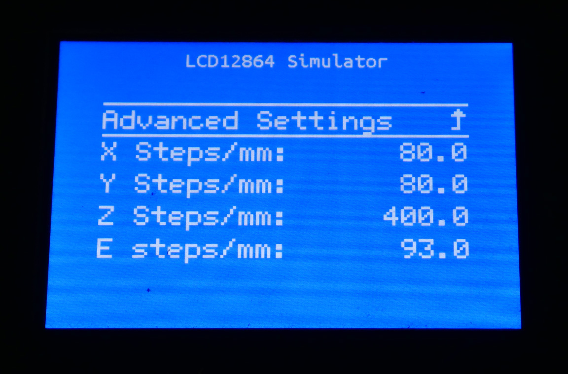 desde la pantalla en modo Marlin en Configuración/Avanzado/Steps