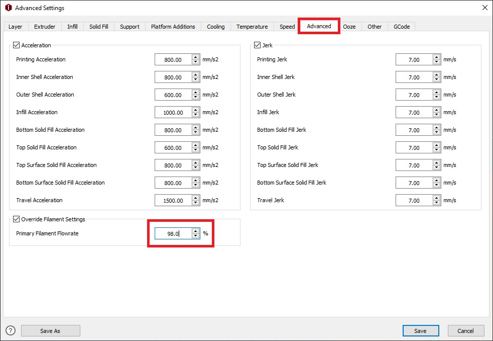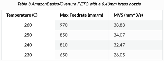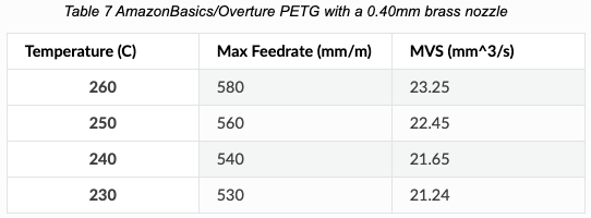 Extrusión Volumétrica, al igual que el punto anterior MVS también queda muy influenciado por el tipo de material por lo que es mas que aconsejable realizar/comprobar que no varía con el nuevo filamento