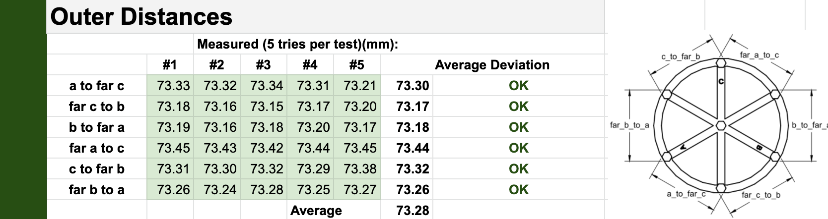 Podremos comprobar la fiabilidad de medidas de nuestra máquina comprobando estas cotas: