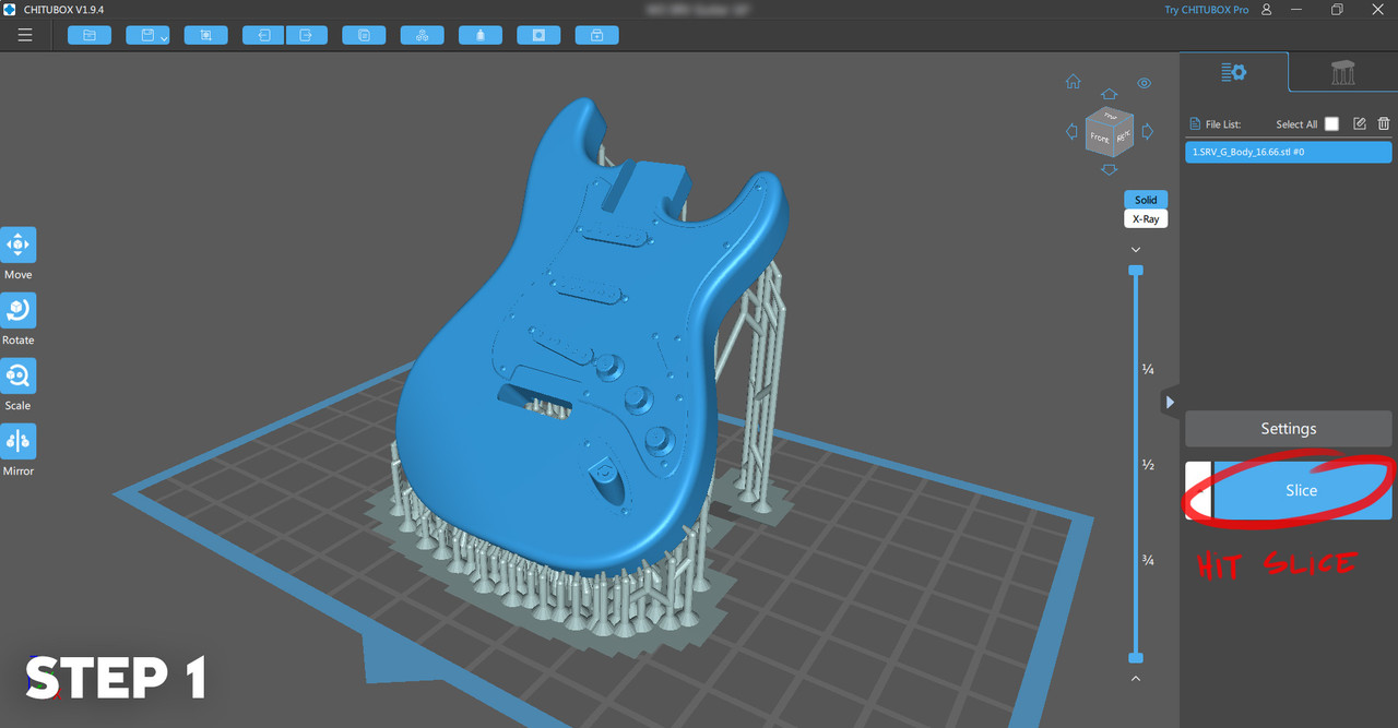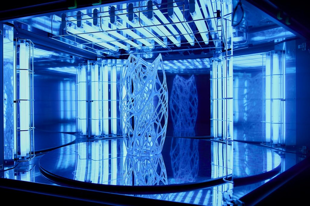**A**hora que ya tenemos la pieza completamente limpia y sin soportes procederemos al curado de la resina en nuestra maquina de curado. El tiempo de curado depende de muchas variables como pueden ser el tipo de resina, el tamaño/detalle de la pieza o el tipo/potencia de la máquina de curado.