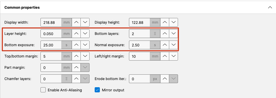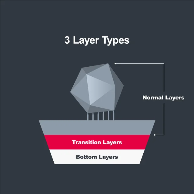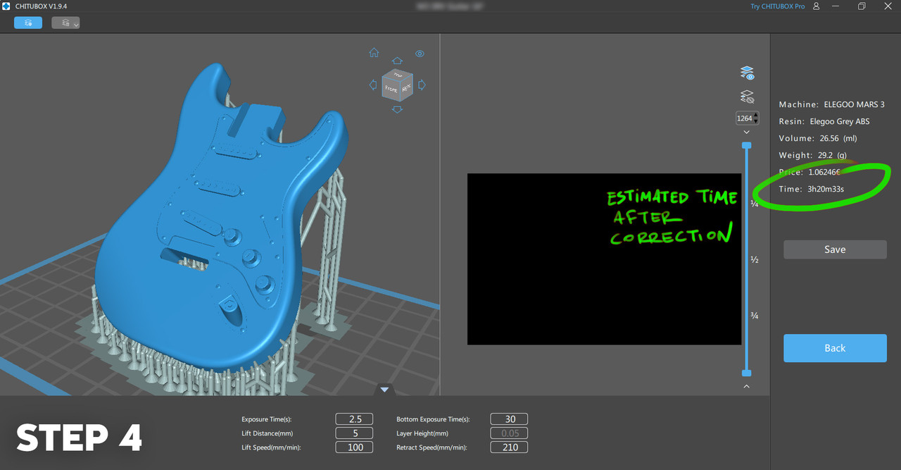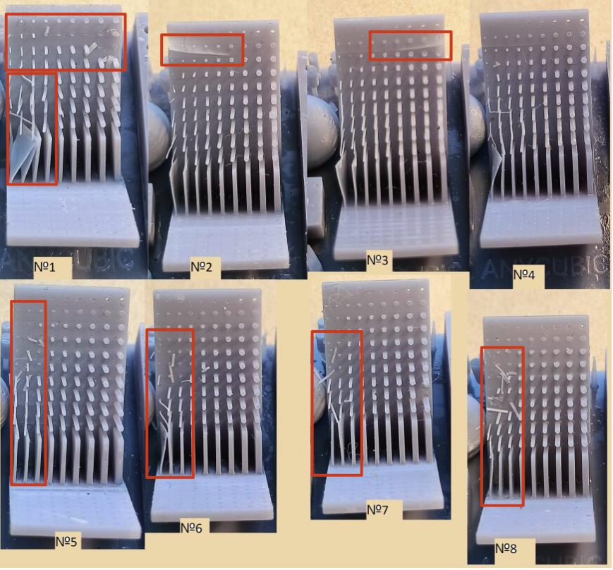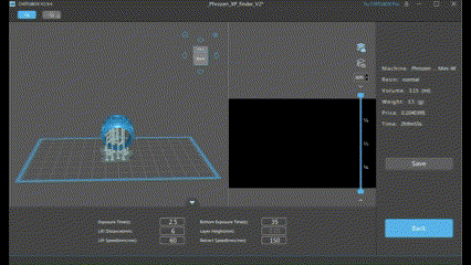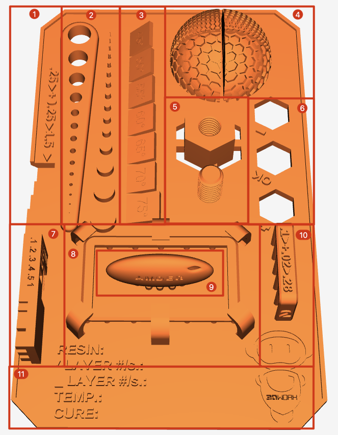 * podemos de ir ajustando nuestra exposición de capas base reduciendo 5s en cada test para encontrar un balance entre baja (no se adhieren las piezas) o alta adherencia (cuesta retirar las piezas).