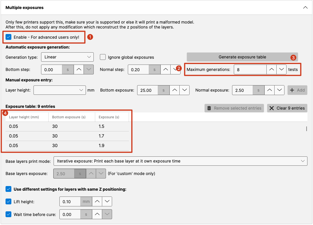 Realizar tests de exposición es algo básico para obtener el mejor resultado, además de tests para tiempos de exposición de capas normales, tienes tests que sirven para diferentes objetivos... te aconsejamos que revises la sección de [tests de calibración](#tests-de-exposicion) para saber qué opciones tienes.