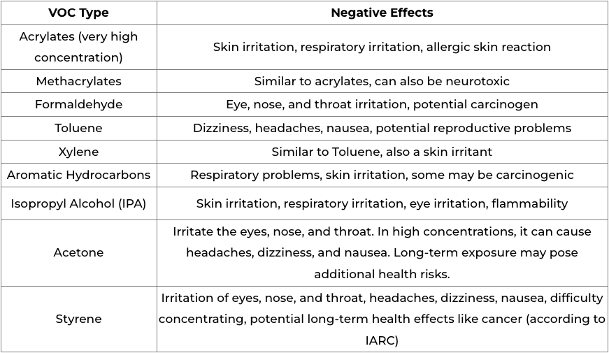 | **Usar mascarillas de tela son suficientes para la impresión en resina.**   | **FALSO!!!** | Este tipo de mascarillas, las típicas que encontramos en los propios kits de las impresoras, son totalmente insuficientes para filtrar VoCs emitidos durante la manipulación/proceso de impresión en resina.                                                                                                                                                                                                                                                                                                                                                                              |