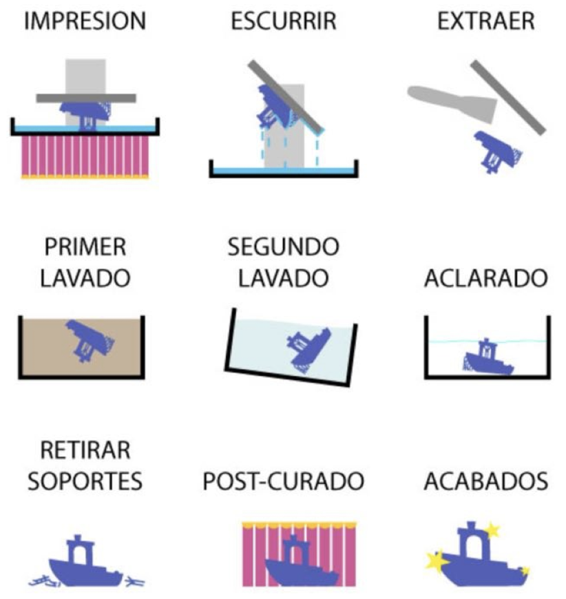 Uno de los pasos más importantes de la impresión en resina es el post-procesado que tendremos que aplicar a nuestras impresiones una vez finalizada la impresión.