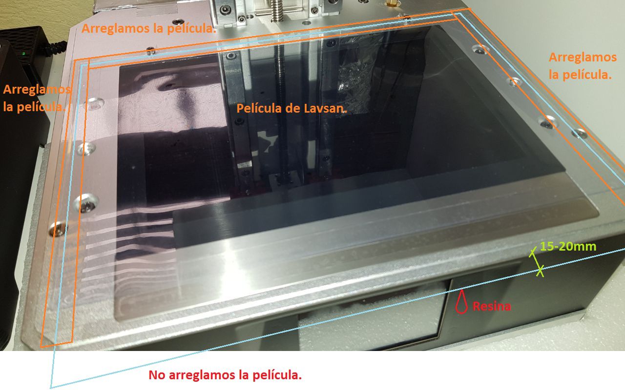 revisión por uso, los fabricantes suelen sugerir el cambio cada 10K capas impresas si utilizamos como film FEP/nFEP... si usamos ACF serán 30K... aunque estos números son orientativos, dependen de cada fabricante o modelo de máquina. En nuestro caso os sugerimos revisar visualmente el film cuando lleguemos a esos números revisando el correcto tensado del film, algo que deberiamos hacer incluso al llegarnos nueva, o también realizar esta verificación de tensado cada vez que cambiemos de resina al vaciar el VAT de esta.