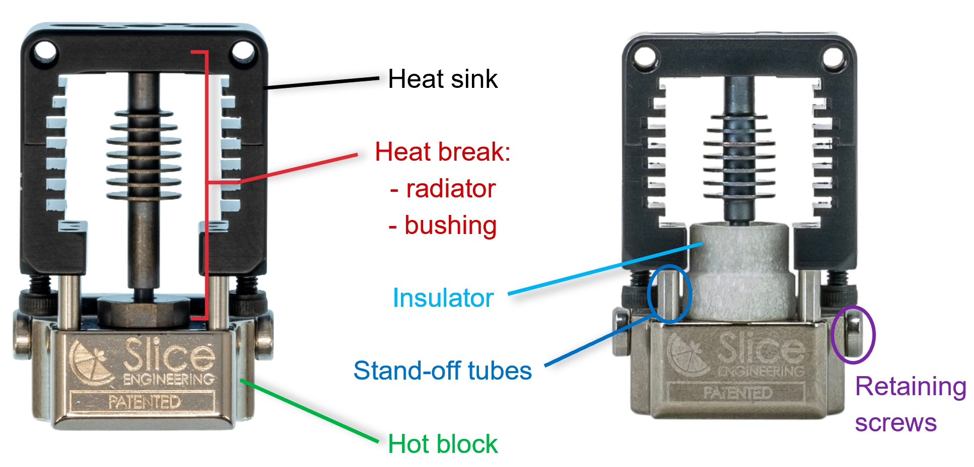 El Mosquito de Slice Engineering es un hotend de alto rendimiento, esto significa que está diseñado y fabricado para trabajar con prácticamente cualquier material termoplástico además de tener las siguientes características que lo hacen uno de los hotend más especiales: