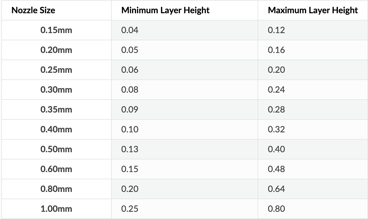 Altura de capa, otro factor que se ve afectado por el cambio de diámetro de nuestro nozzle es la altura de capa los cuales siempre aconsejamos que sigan 3 parámetros básicos: