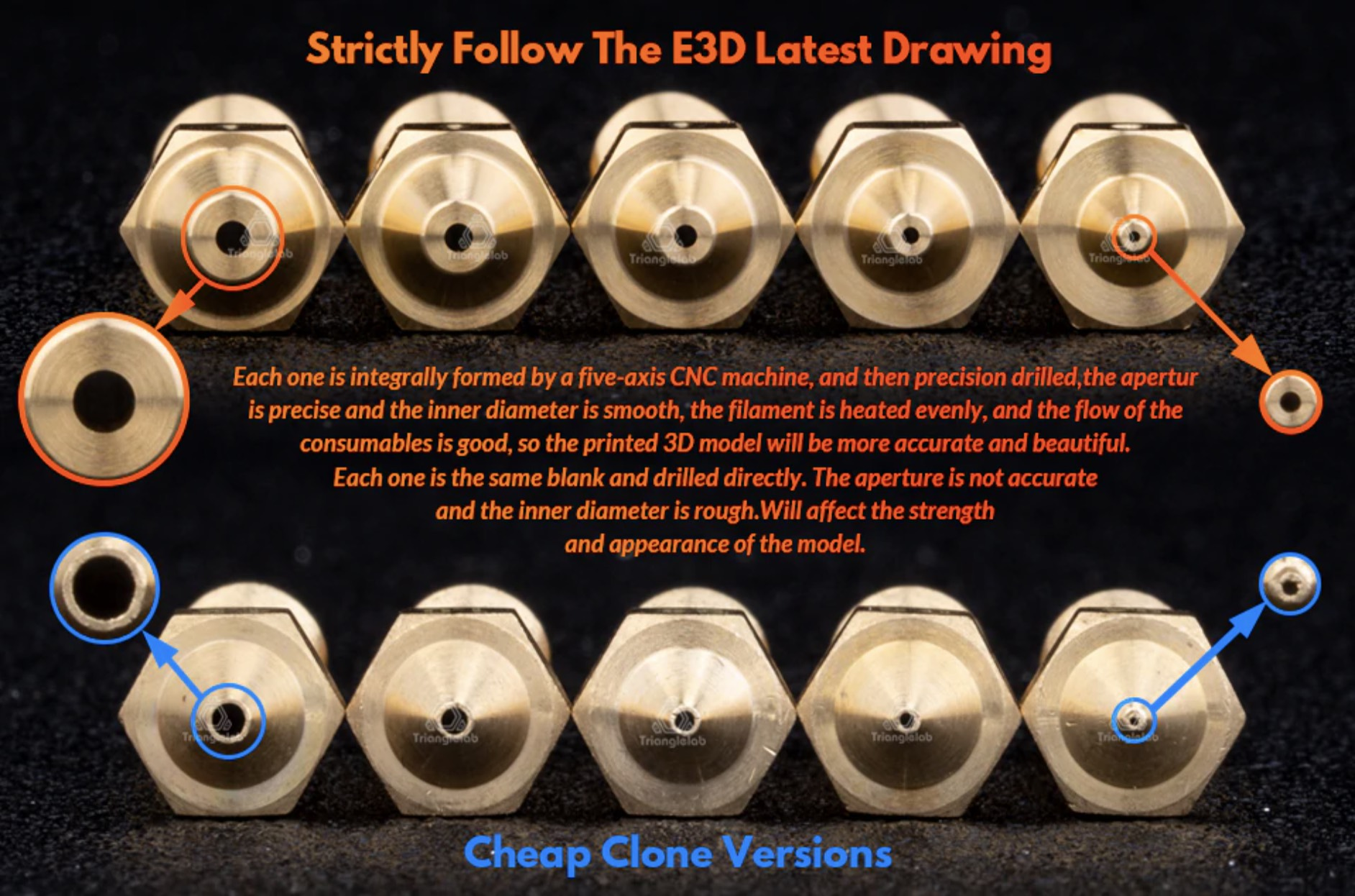 Como ya hemos comentado anteriormente el material de fabricación de nuestro nozzle nos puede marcar el tipo de filamentos a usar y en cierta medida marcar la calidad de nuestras impresiones, uno de sus aspectos más importante es que marcará la durabilidad y coste del mismo.