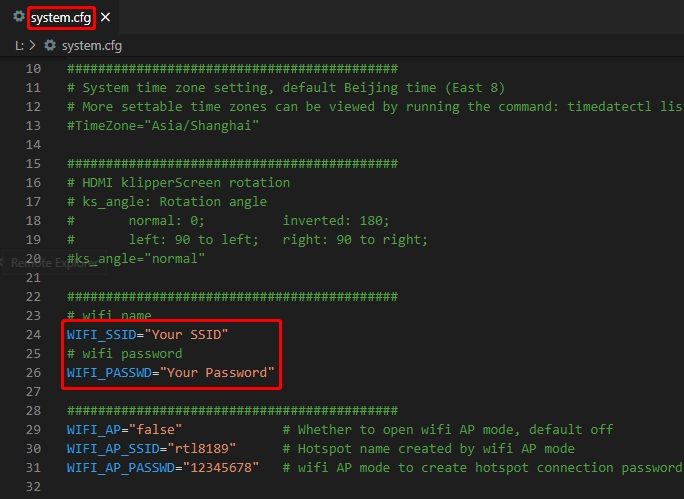 En esta encontraremos un fichero system.cfg donde ajustaremos nuestra configuración WiFi donde ajustaremos nuestro WIFI_SSID y WIFI_PASSWD a los datos de nuestra red:
