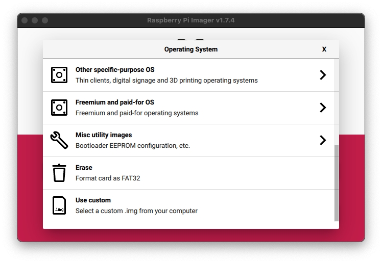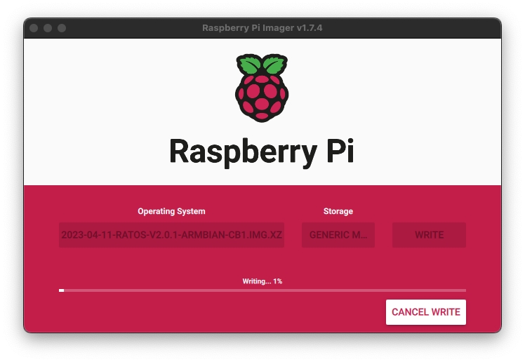 Una vez descargada la distribución de Klipper que más nos guste, emplearemos Raspberry Pi Imager o balenaEtcher para transferir la imagen de Klipper a nuestra tarjeta SD. Es aconsejable una tarjeta de al menos 16-32Gb. Para esta guía usaremos RatOS que es la distribución de Klipper que solemos usar normalmente.