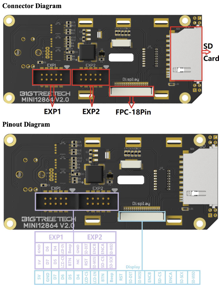 Estas pantallas no están pensadas para su uso en electrónicas E3 diseñadas para el uso en máquinas Ender 3. En todo caso realizando algunos cambios en Marlin y adaptando el cableado podemos usarlas.