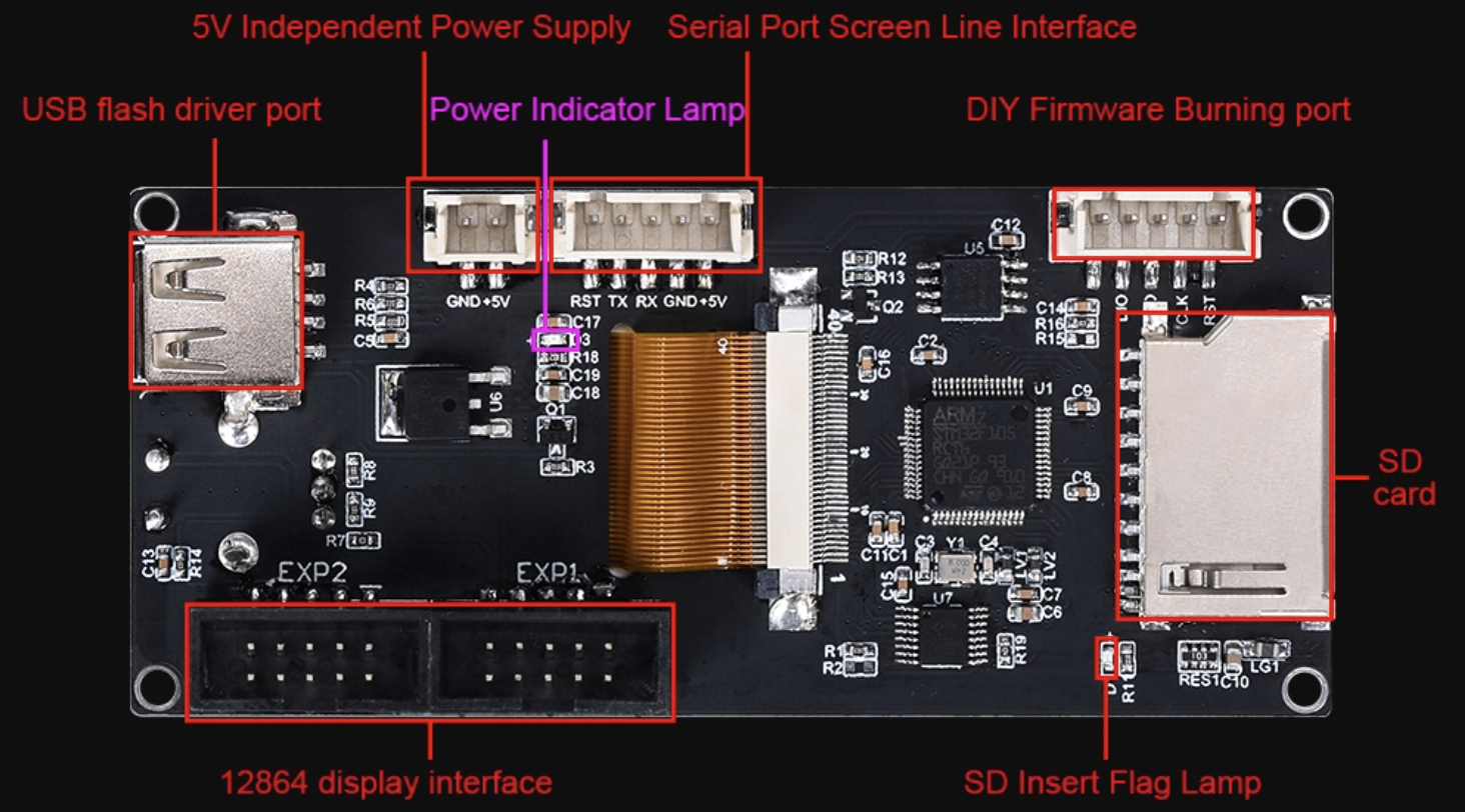 Errores mas comunes al actualizar el firmware de la pantalla: - la pantalla deja de responder el modo táctil, una posible solución es dejar un fichero reset.txt (sin contenido) en la raíz de la SD (NO en el USB) y encender/reset de la pantalla para que restaure su EEPROM - muestra errores de "Invalid App" o proglema en config.ini, puede solucionarse dejando el config.ini de la nueva version y un fichero reset.txt (sin contenido) en la raíz de la SD (NO en el USB), endender/reset de la pantalla para que aplique la nueva estructura de EEPROM - iconos o textos aparezen corruptos, volver a copiar la carpeta TFTXX que coincida con nuestra pantalla debería de solucionar el problema