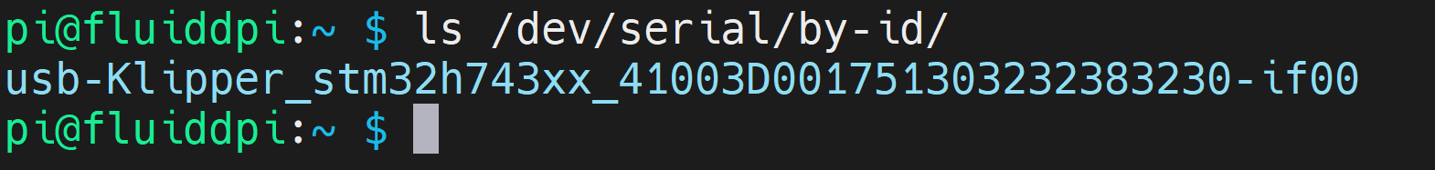 Si vamos a usar USB para comunicar Klipper con SKR 3 ejecutaremos el siguiente comando desde Klipper ls /dev/serial/by-id/*, desde Kiauh disponemos desde su menú de una forma rápida y sencilla para ejecutar esta acción, para identificar el ID correcto de nuestra SKR 3 y añadirlo a nuestro printer.cfg