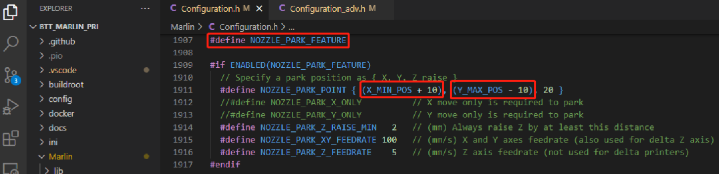 También necesitaremos tener NOZZLE_PARK aunque si seguimos la guía de configuración Marlin anterior ya la tendremos habilitada, aunque en el caso de tener sensor se aconseja modificar las coordenadas:
