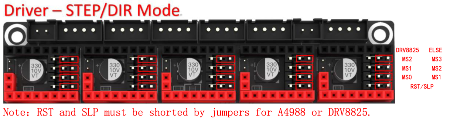 En este modo tenemos que configurar los jumpers MS0-MS2 de acuerdo con las especificaciones de nuestros drivers y necesidades. Es importante indicar en el firmware que vamos a usar este modo!!