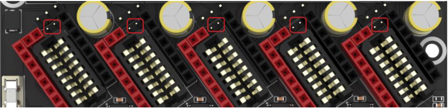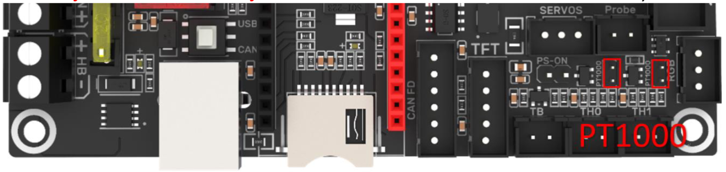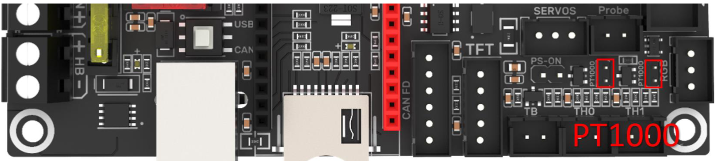 Cuando usemos un termistor PT1000 necesitaremos conectar los jumpers marcados en las capturas siguientes, dependiendo si lo conectamos en TH0 o TH1, para que la resistencia pull-up de estos conectores varíe de 4.7K a 1K que es lo que necesitan estos PT1000.