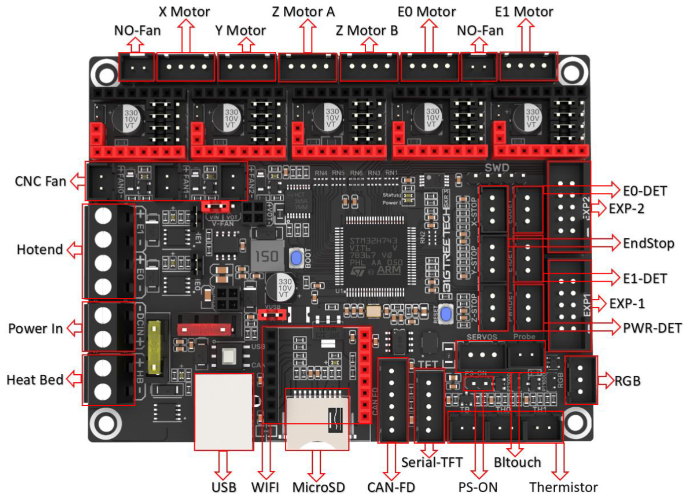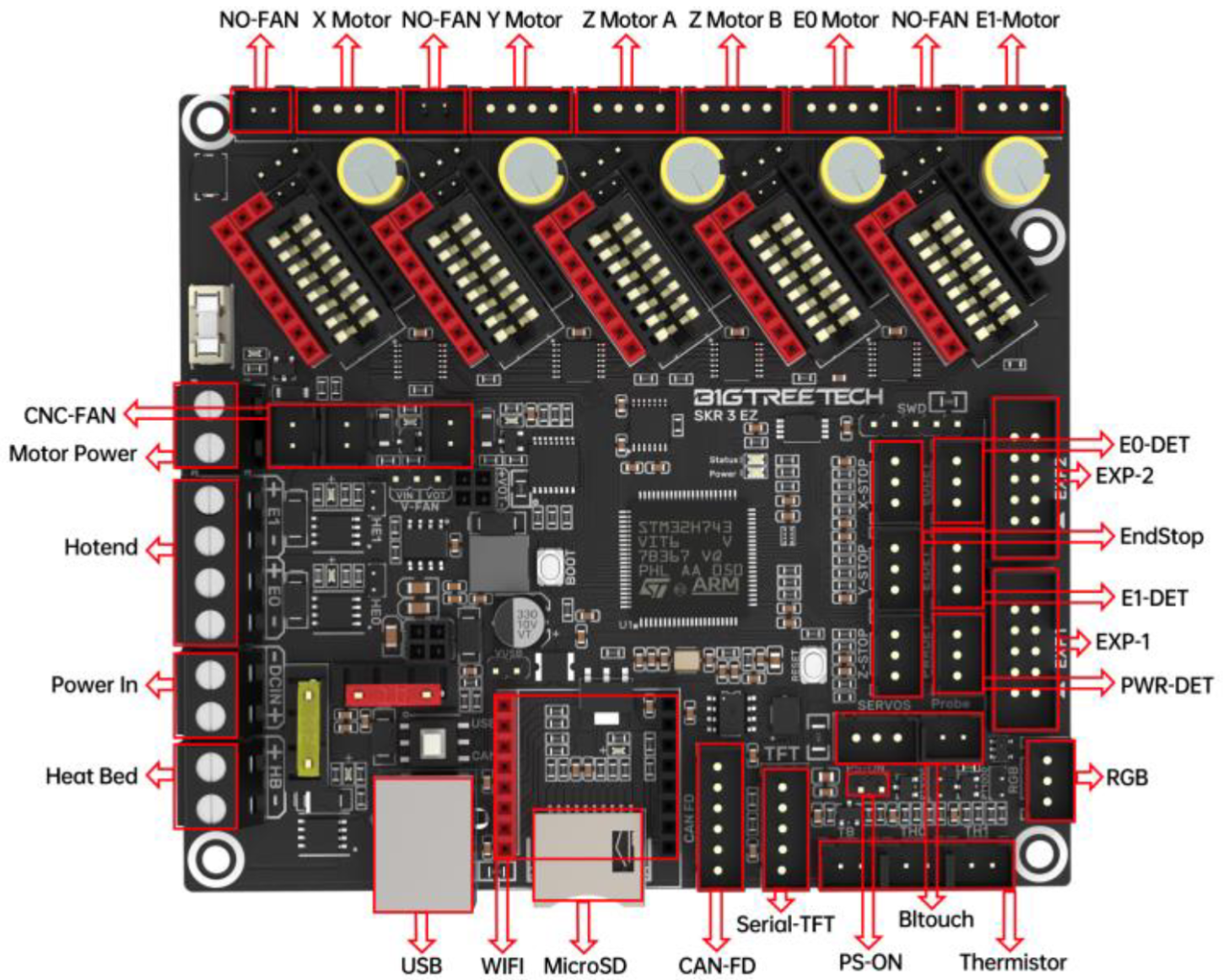 Si algo nos tiene acostumbrados Bigtreetech es a disponer de un completo arsenal de conexiones para poder sacar el máximo provecho a sus electrónicas y como no podía ser de otra forma la serie SKR 3 esta a la altura y con nota.