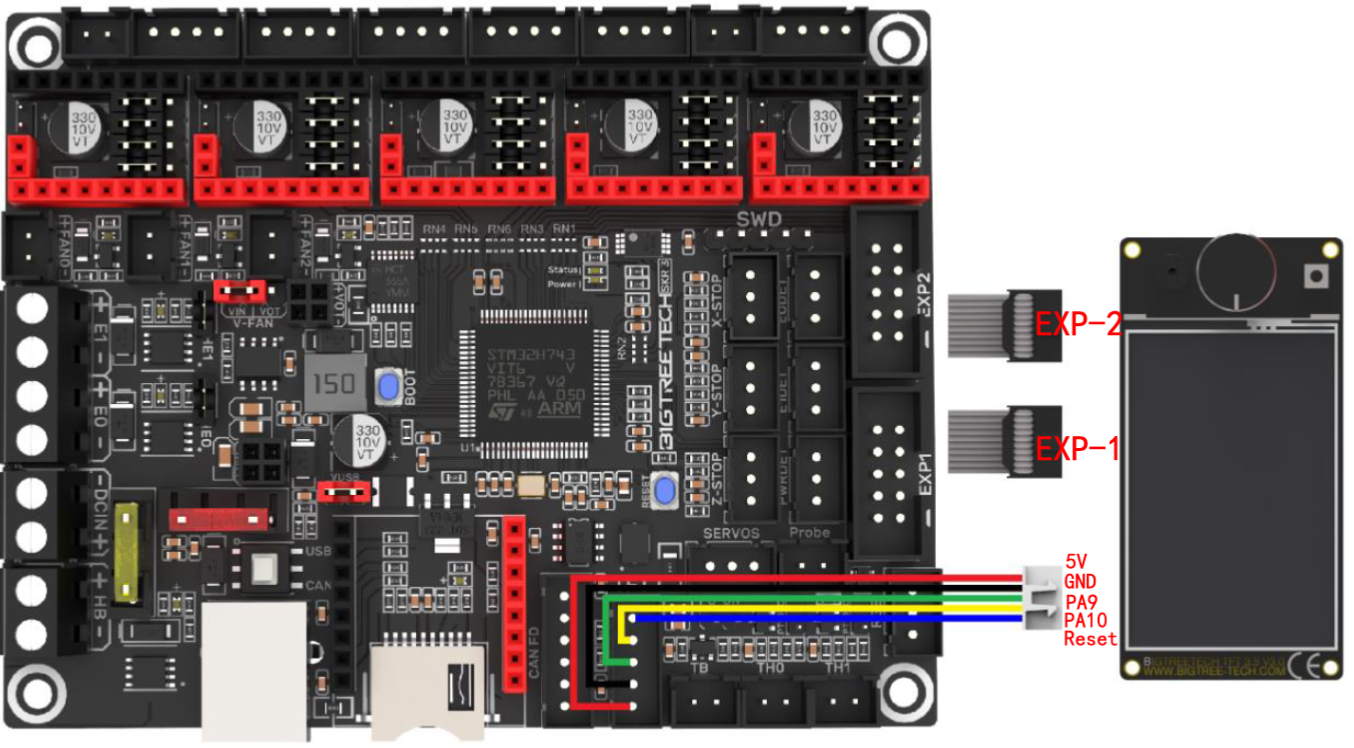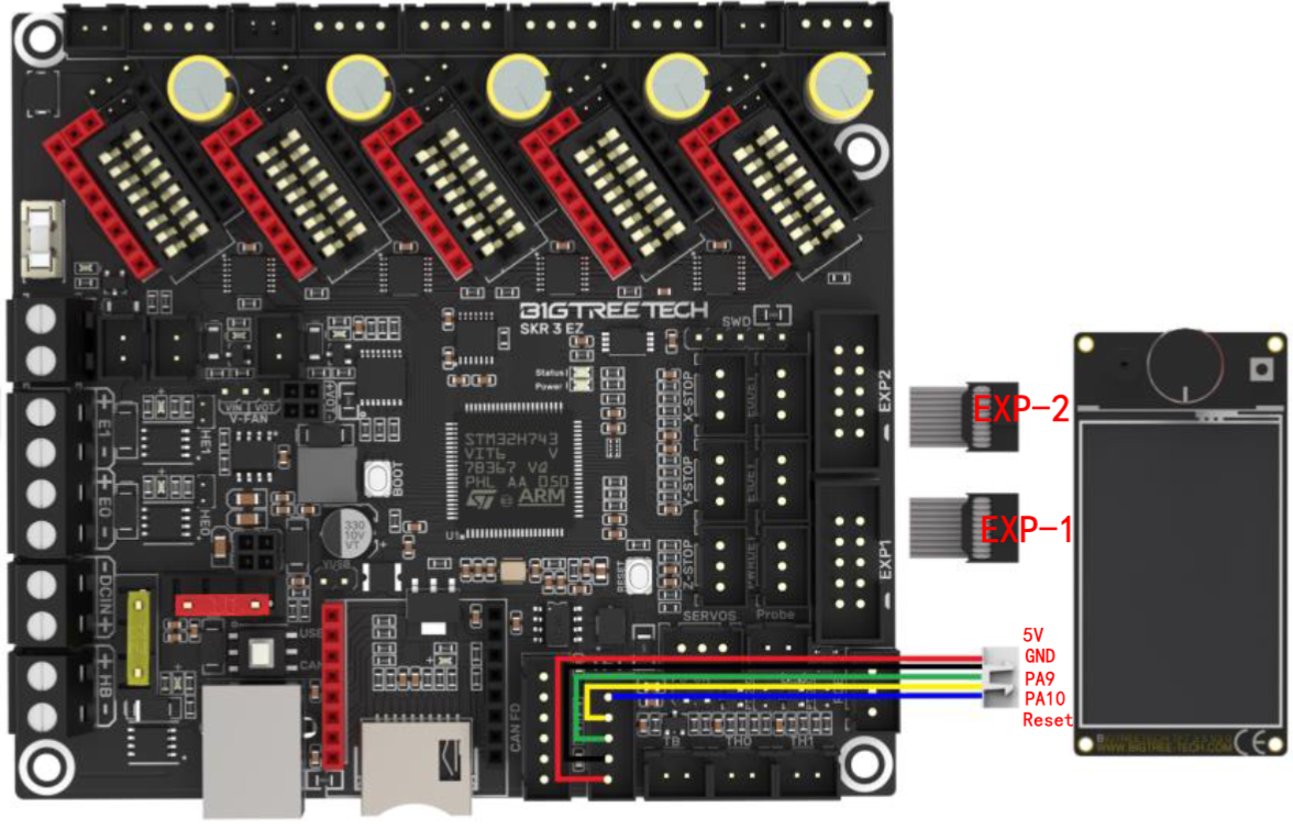 Las electrónicas de la serie SKR 3 cuentan con conexiones EXP para LCD tradicionales y conector TFT para el uso de pantallas host serial con lo que tenemos un amplio abanico de opciones para disponer de pantalla en nuestra impresora.