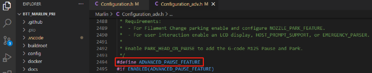 Otra función necesaria será ADVANCED_PAUSE_FEATURE: