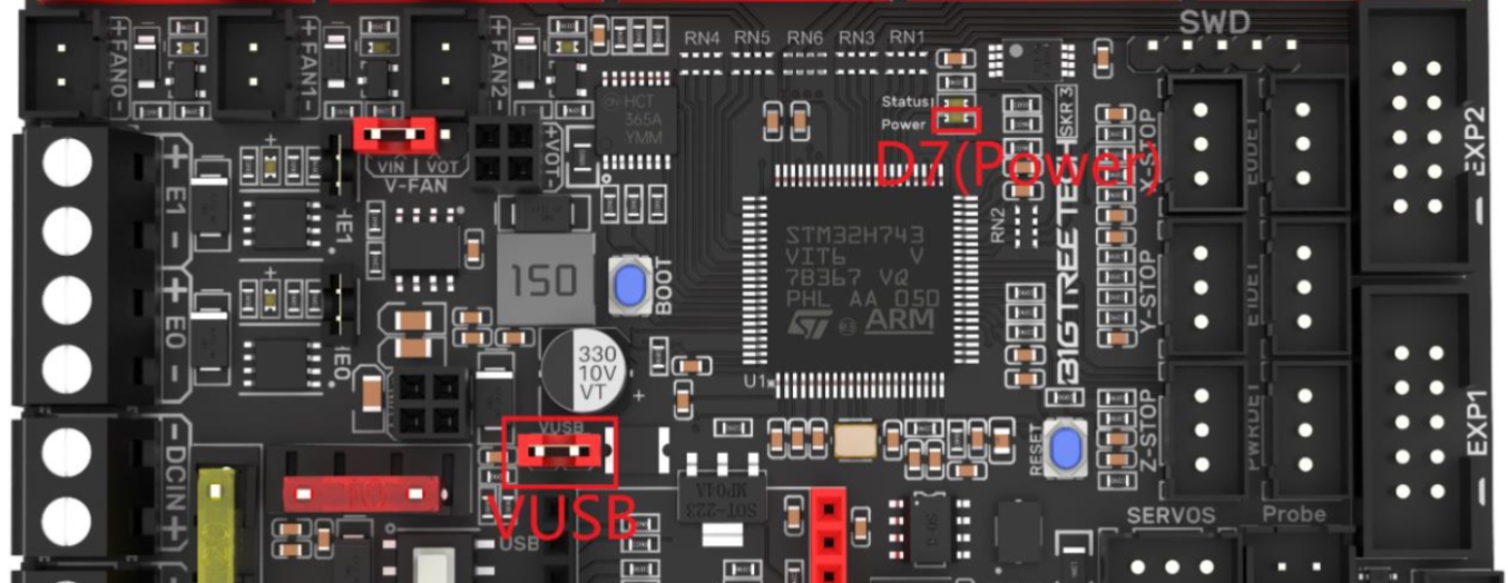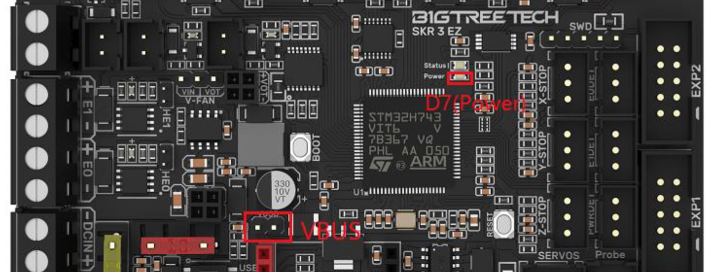 en el caso de nuestra SKR 3 revisar el jumper de alimentación ya que de tenerlo en una posición incorrecta no funcionará correctamente.