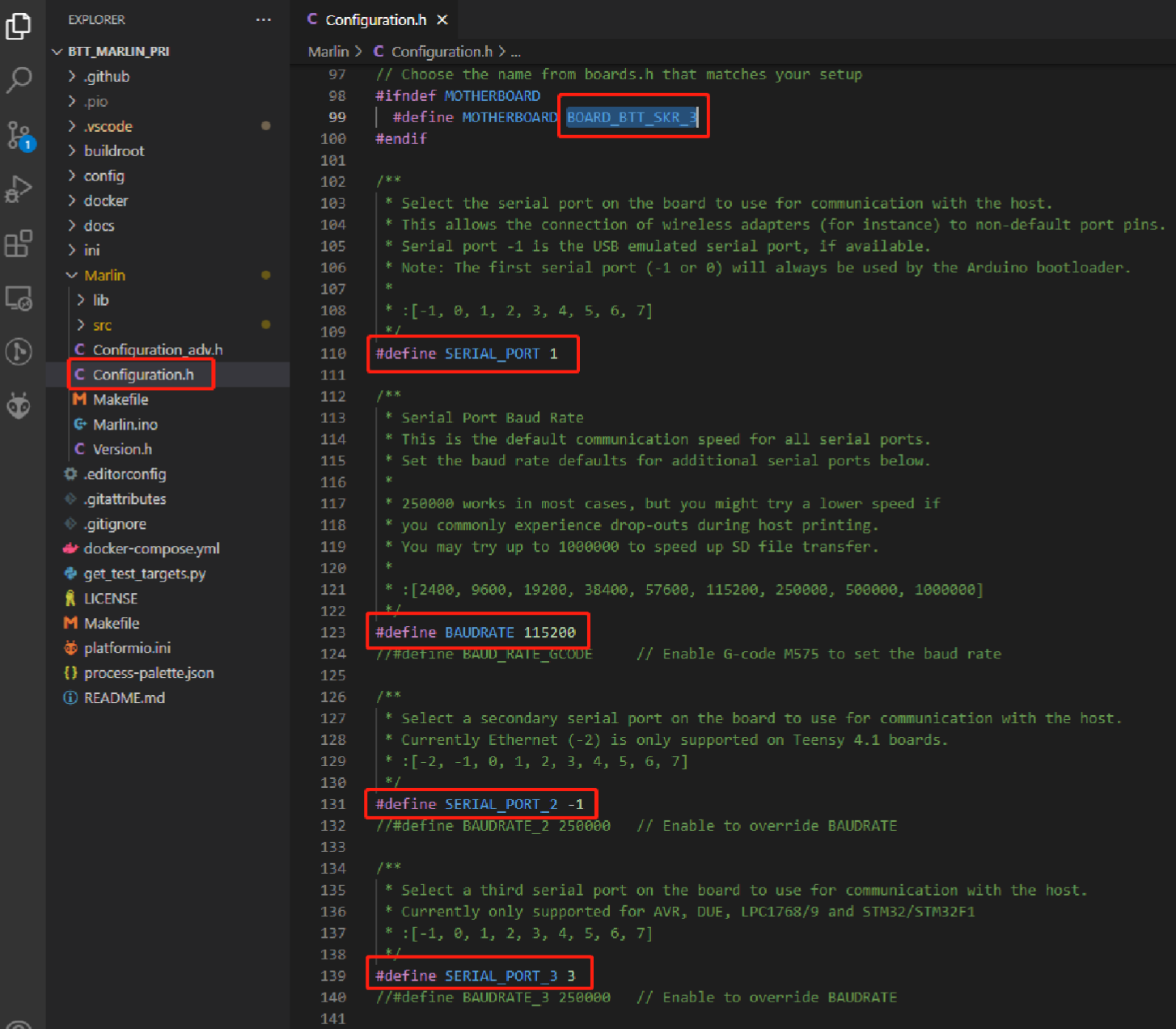 Que en nuestro Marlin tengamos definidos correctamente los drivers así como las direcciones de comunicación UART/SPI para nuestro modelo de placa que podemos encontrar en configuration_adv.h buscando ADDRESS.