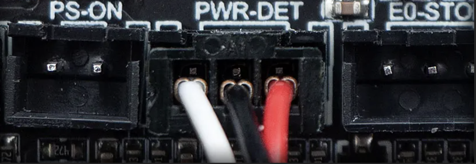 Tambien contamos con un conector dedicado a la detección, mediante una placa externa como por ejemplo BTT UPS 24V, de fallos de alimentación que permite detectar un fallo de corriente... enviar una señal a la placa que informe al firmware que ha sucedido un problema en la alimentación y que inicie el proceso asociado para permitir recuperarla una vez la corriente se restablezca.