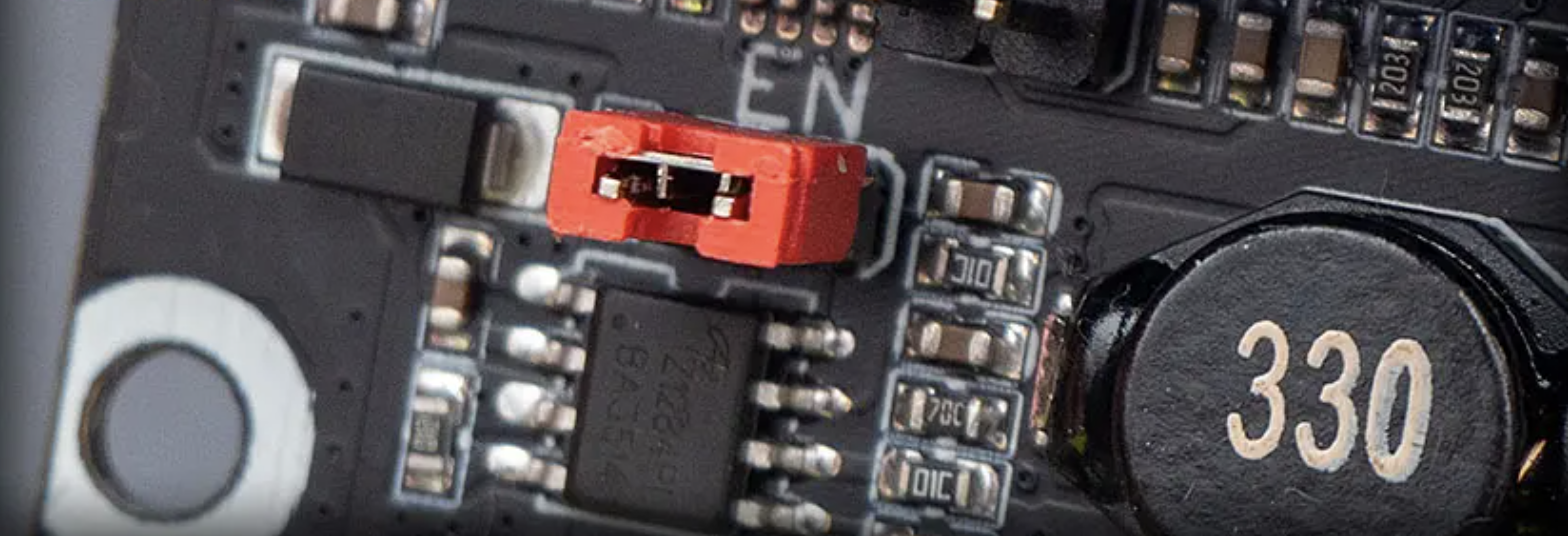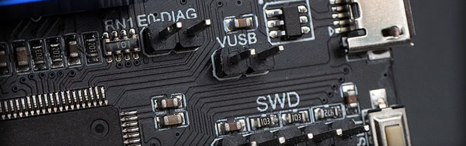 Al contrario de sus hermanas SKR E3 Turbo o SKR MINI E3 v2. En este modelo han incluido de nuevo el jumper para seleccionar la alimentación a usar entre USB o Fuente que evita desagradables problemas que pueden ocurrir al mezclar alimentaciones diferentes.