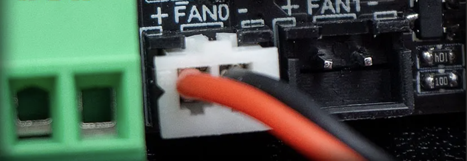 En este caso contaremos con FAN0 que será la salida de ventilador de capa para el primer hotend y FAN1 que lo hará para el segundo ventilador de capa de un segundo hotend usando la placa IDEX o como refrigeracion del HotEnd principal.