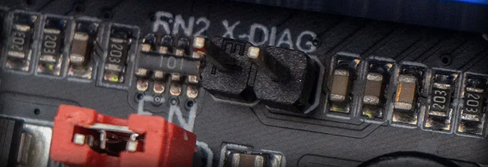 Normalmente en otras placas para usar esta funcionalidad es necesario el pin DIAG siendo necesario quitarlo/doblarlo para usar finales de carrera físicos. En esta placa como en la SKR Mini E3 TURBO, v2 o SKR 1.3 cuenta con unos pines para poder hacer esta función de una forma cómoda.Jumpers DIAG para la gestión de sensorless o finales de carreras físicos