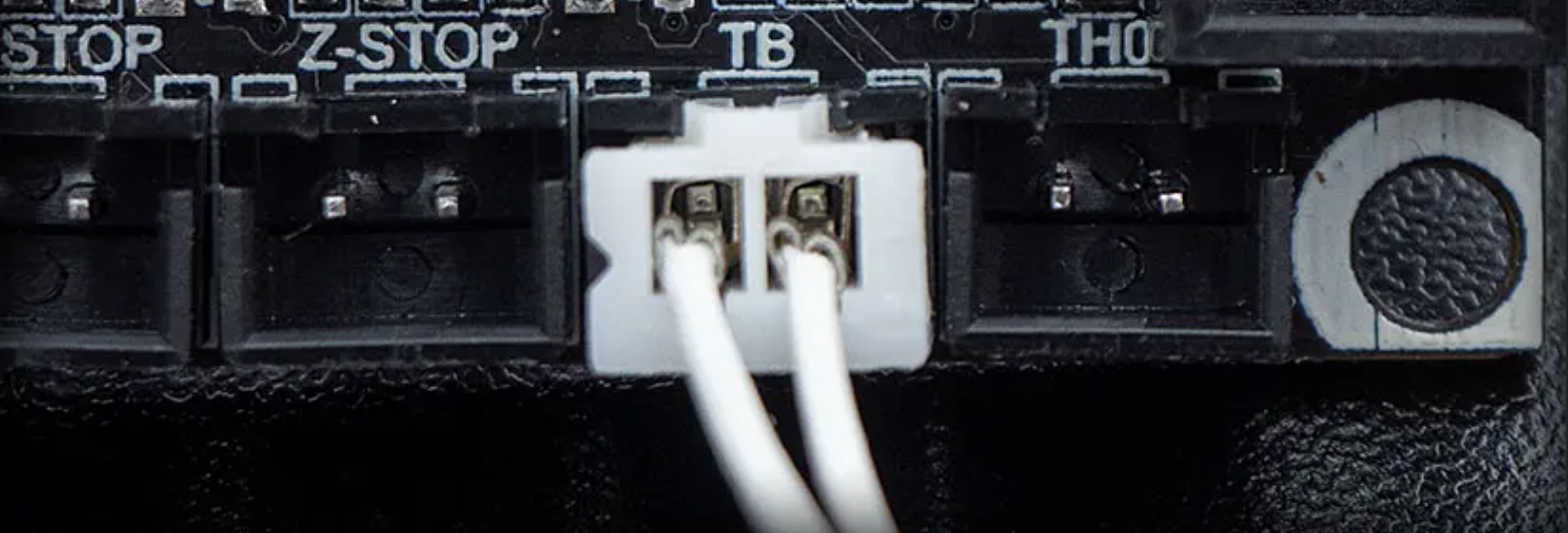 La orientación de los thermistores normalmente no es importante ya que estos no suelen tener polaridad. En este caso para esta placa contamos para un conector para la cama caliente (TB) y otro para el calentadore del hotend (TH0).