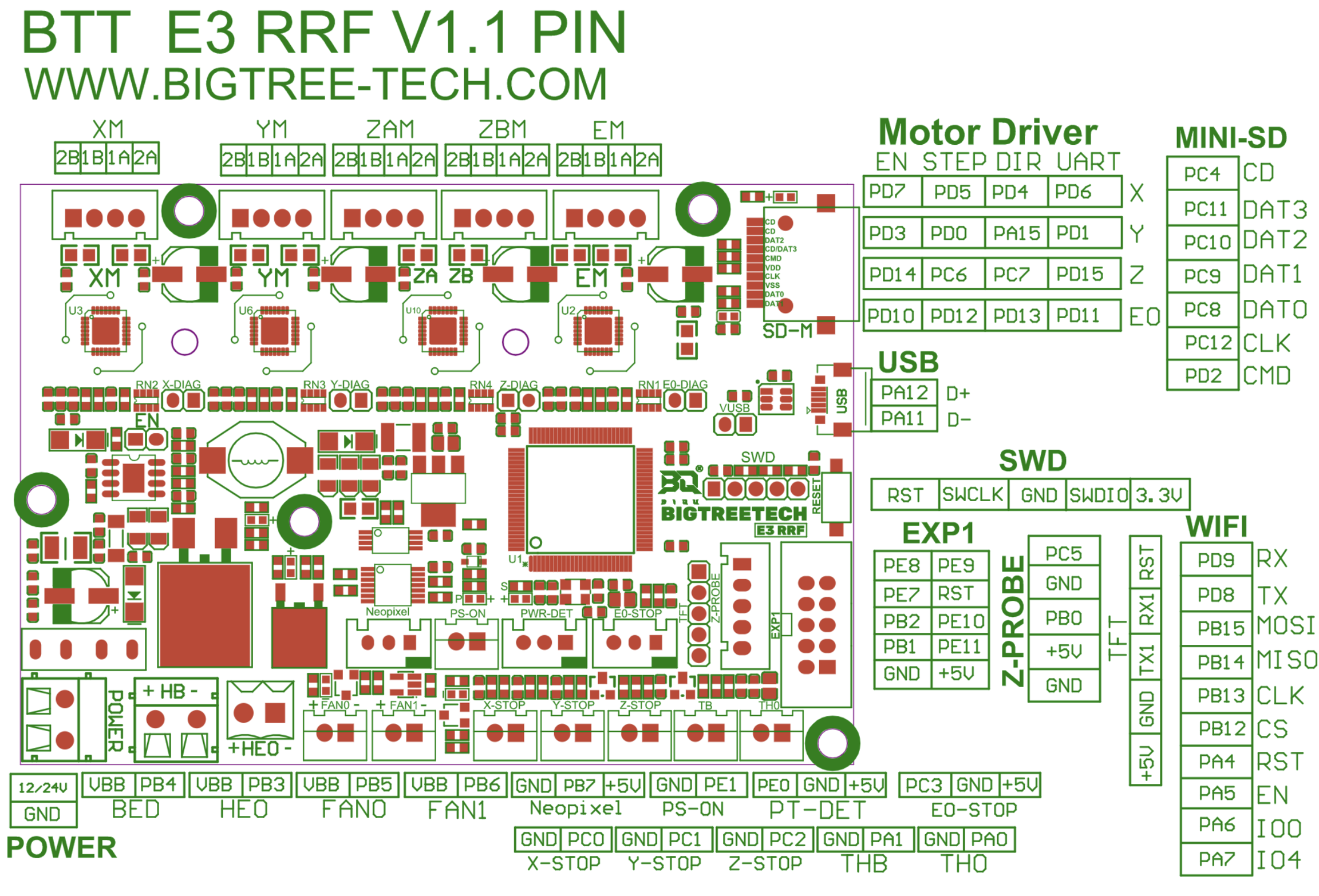 Aunque en este caso Bigtreetech no facilita las configuraciones Klipper dispone de las definiciones de esta placa.
