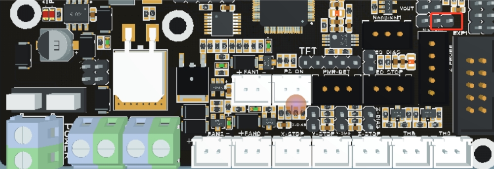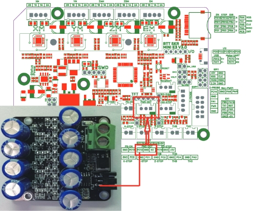 En el caso que usemos muchos componentes externos usando el bus de 5V de la placa, y en especial en el caso de usar tiras leds, es aconsejable la instalación del módulo Bigtreetech DCDC 5V.