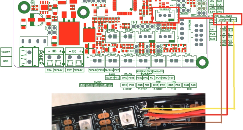 Aunque no es una mejora directamente en el uso de la impresora si que es muy útil la inclusion de una tira led controlable ya sea como iluminación de la zona de impresión así como la gestión de eventos. Os animamos a revisar la guía de Neopixel donde encontraréis más información detallada.