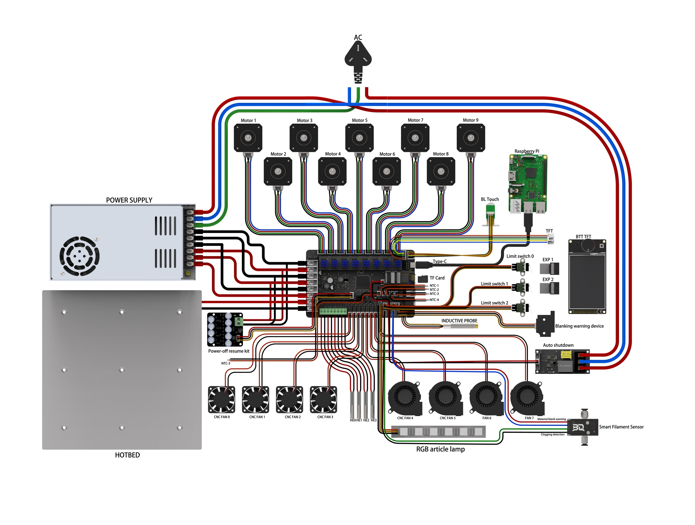Alimentación independiente para motores, cama caliente y electrónica
