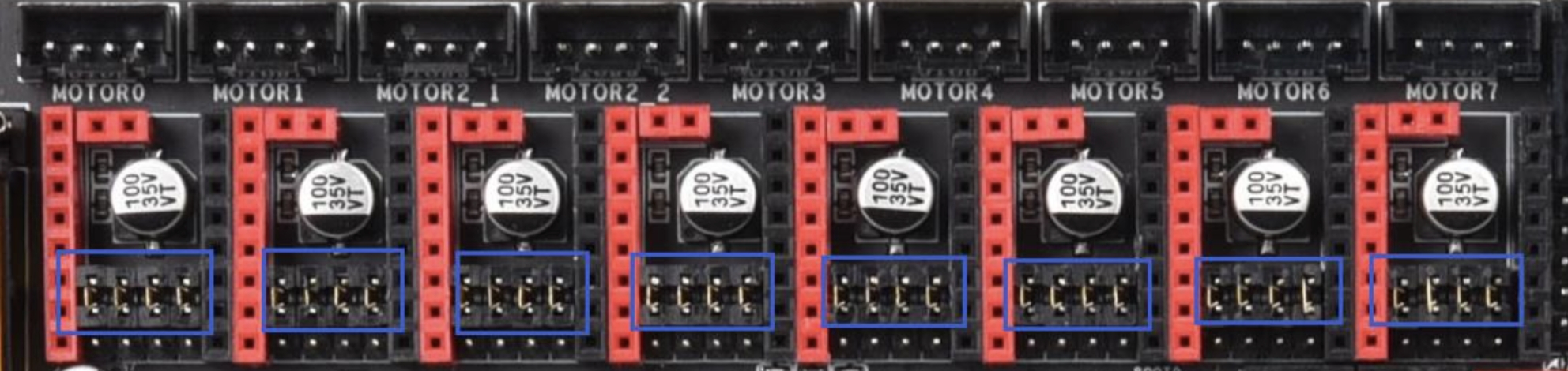 Para habilitar esta función en un eje, recordad que hay una parte que se tiene que realizar en nuestro firmware para lo cual os aconsejamos revisar nuestra guía Sensorless, es tan sencillo como colocar un jumper en los conectores Sensorless.