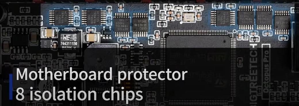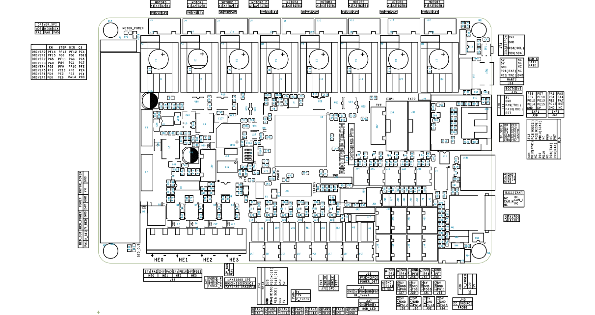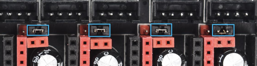 Soporte para drivers de alto voltaje (HV) soportando hasta 60V teóricos aconsejamos trabajar con sistemas de 48V. Por supuesto podemos usar nuestra placa Octopus PRO con drivers estándar gracias a que BigtreeTech ha puesto a nuestra disposición un jumper para elegir un modo u otro.