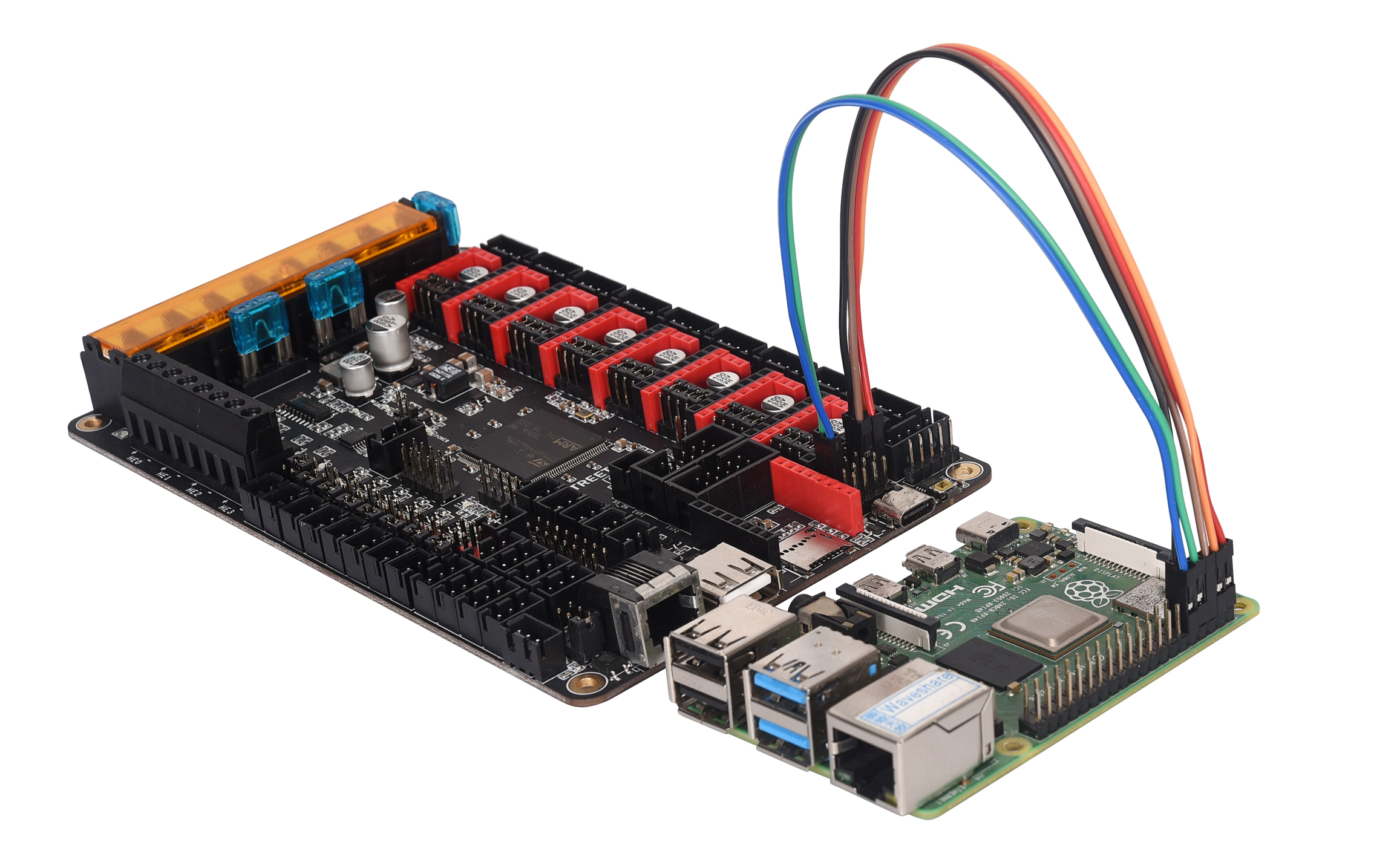 MCU de 32b ARM Cortex-M4 STM32F446ZET6 con una frecuencia de reloj de 180MHz y 512kB de memoria flash siendo esta versión la más aconsejable para firmwares Klipper o Marlin