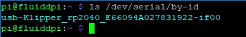 - Si vamos a usar USB para comunicar Klipper con SKR Pico ejecutaremos el siguiente comando desde Klipper ls /dev/serial/by-id/*, desde Kiauh disponemos desde su menú de una forma rápida y sencilla para ejecutar esta acción, para identificar el ID correcto de nuestra SKR Pico y añadirlo a nuestro printer.cfg