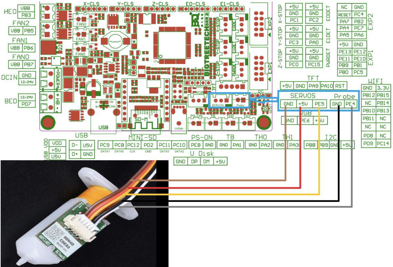 La SKR v2 cuenta con interfaces para conectar motores servo siguiendo el siguiente esquema: