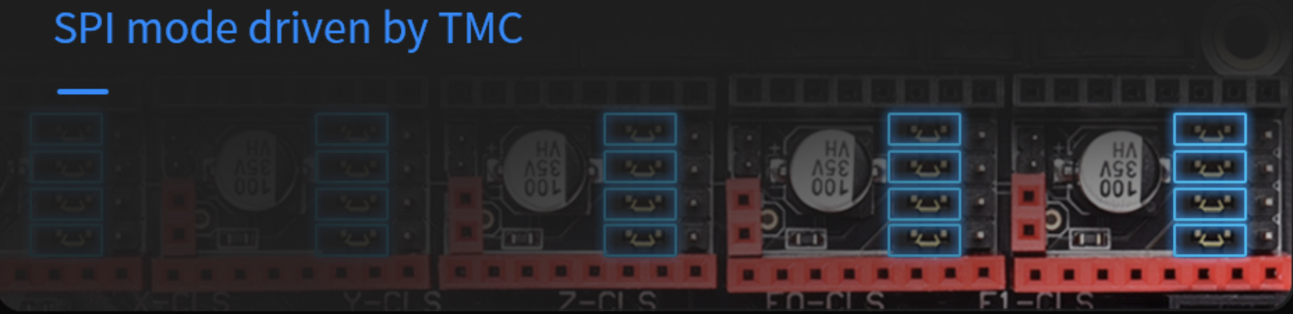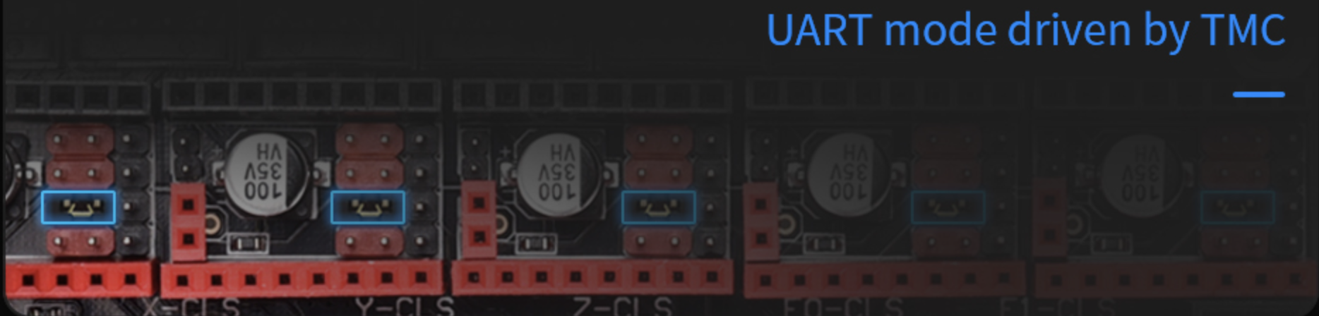 Drivers, sin duda uno de los grandes cambios en esta revisión sobre las SKR 1.3/1.4 es como los drivers interactuan con el resto de la electronica mediante la inclusión de protecciones para evitar la conexión incorrecta de los drivers además de la inclusión del tan solicitado jumper para habilitar sensorless que desgraciadamente fué eliminado en la SKR 1.4 y que nos obligaba a "mutilar" nuestros drivers en caso de ejes que no fueran X, Y o en el caso de no usar Sensorless el cual podéis encontrar más información en nuestra guía.
