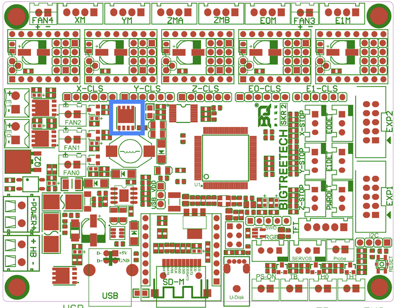 IMPORTANTE!!! Vamos a hacer una breve pausa en la guía para explicar algo importante en estas placas SKR v2 en las primeras unidades que fueron distribuidas y que es muy importante conocer. Tal y como hemos comentado una de las grandes novedades de la SKR v2 ha sido la inclusión de una protección para evitar que al colocar los drivers de forma incorrecta la placa y drivers quedasen irremediablemente dañados. Por desgracia las primeras unidades de SKR v2 llamadas REV A tuvieron un grave problema de diseño/componentes que precisamente provocaba los fallos que pretendía solventar en drivers TMC. En el siguiente documento de Gdocs podéis encontrar más información sobre el problema con más detalles, también en el siguiente documento como solventarlo si disponéis de una de estas placas.