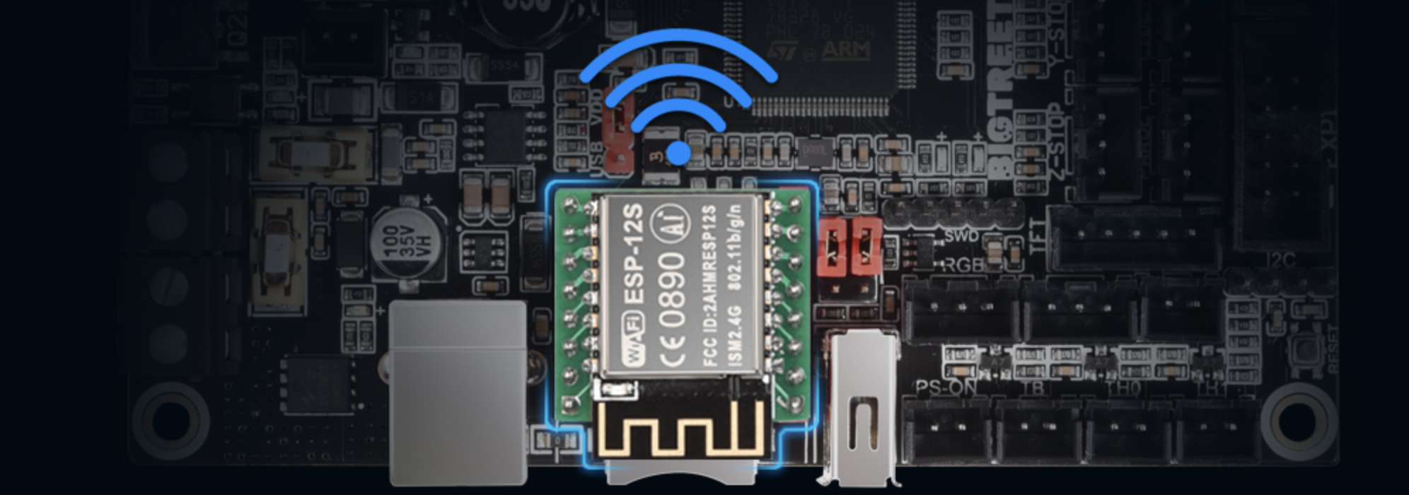 Wifi, aunque sus hermanas ya contaban con un conector para la conexión de Wifi en esta SKR v2 se ha mejorado y compatible con ESP12S o ESP07 sobretodo por la compatibilidad con RepRap Firmware.