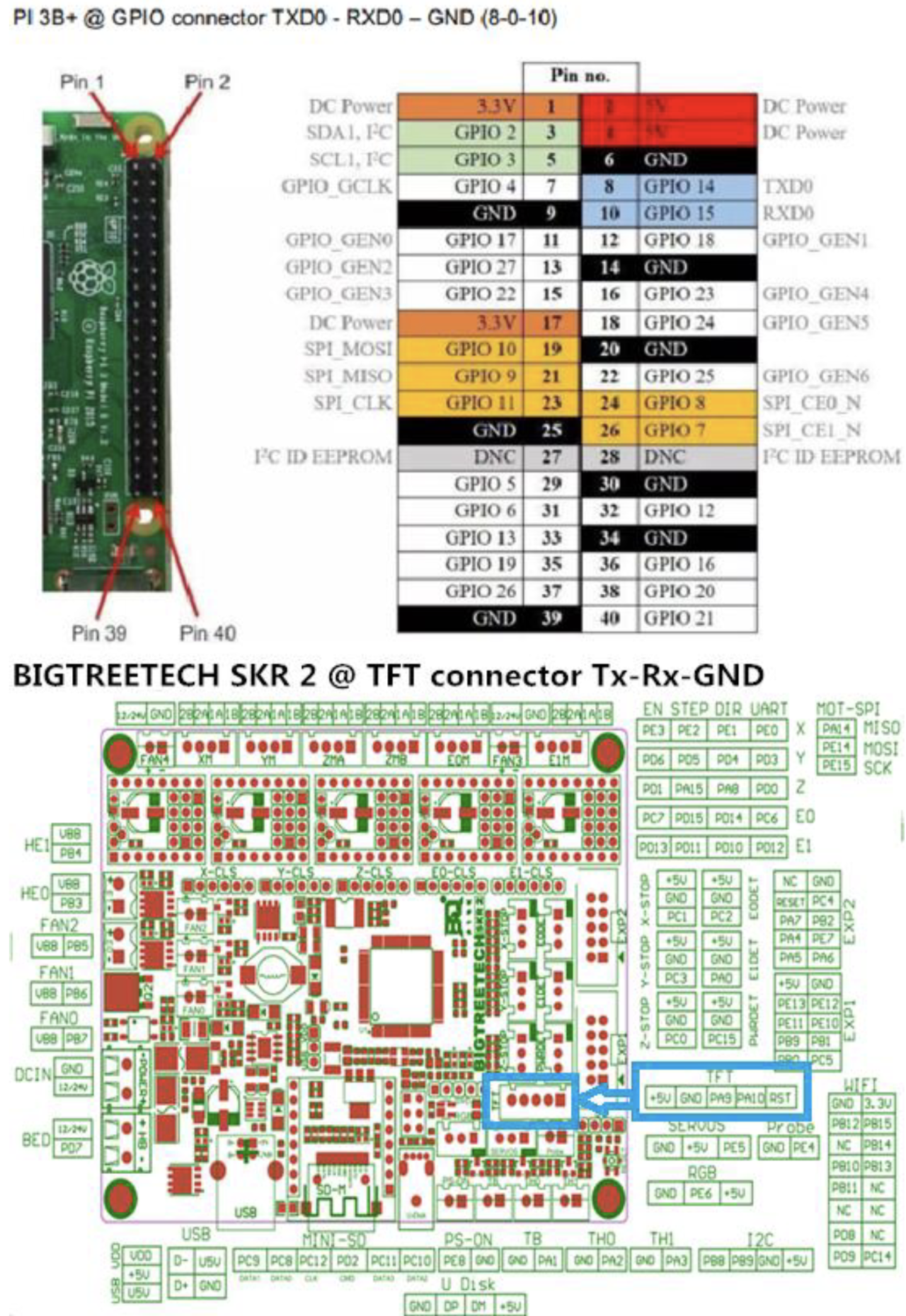 Si queremos gestionar nuestra impresora remotamente, algo muy interesante y potente, podemos usar Octoprint por ejemplo que se instala sobre una Raspberry normalmente. Podemos conectar esta por el cable USB o directamente usando GPIO de nuestra Raspberry el conector TFT (o cualquier otro serial de la placa como el que encontramos en el puerto Wifi).